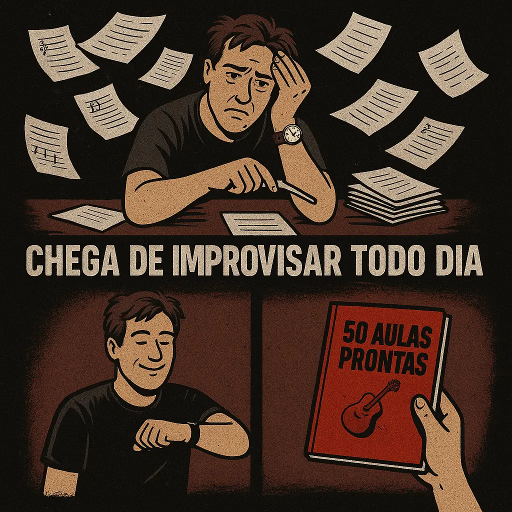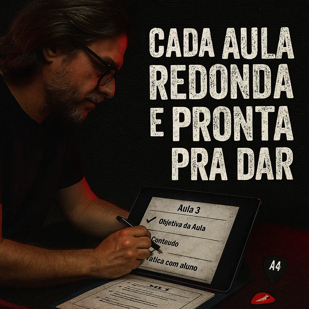 ✅ Chega de improvisar no susto! Aqui você tem um cronograma completo pra guiar seus alunos com técnica, progressão e clareza. Do primeiro acorde ao improviso fluente — tudo mastigado, pronto pra aplicar.